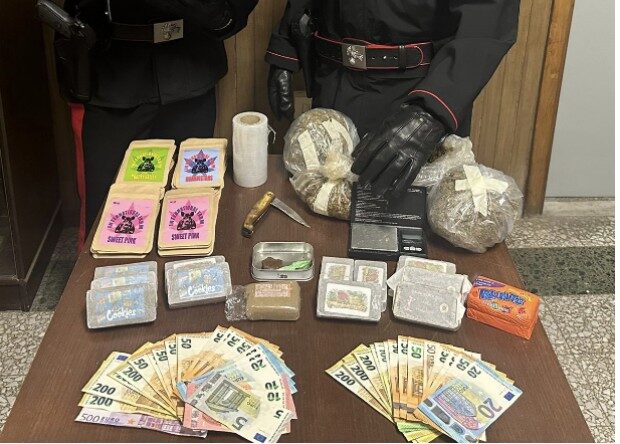 Gli arrestati, un 35enne ed una 25enne, sono stati individuati a seguito di un mirato servizio che ha permesso di rinvenire e sequestrare nell’appartamento in uso alla coppia, nella loro disponibilità e con finalità di cessione a terzi, un ingente quantitativo di sostanze stupefacenti: in particolare oltre 1,4 kg di hashish in 14 panetti occultati in buste per sottovuoto; oltre 400 grammi di marijuana suddivisa in quattro buste; un pezzo di sostanza stupefacente del tipo oppio del peso di circa 6 grammi; un grammo di cocaina rinvenuta all’interno di una busta in cellophane, nonché materiale per la pesatura, il taglio ed il confezionamento e più di 3300 euro in banconote di vario taglio, verosimilmente provento dell’attività illecita.