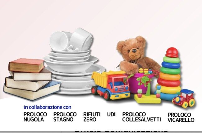 COLLESALVETTI – Sabato (22 novembre) in piazza Macchi a Vicarello dalle 9 alle 12 appuntamento con Soffitte in piazza, l’evento organizzato dal Comune di Collesalvetti e Rea Spa, in collaborazione con le Pro Loco di Collesalvetti, Vicarello, Stagno e Nugola, l’Unione Donne Italiane e Rifiuti Zero, nato con lo scopo di dare una seconda vita agli oggetti inutilizzati.