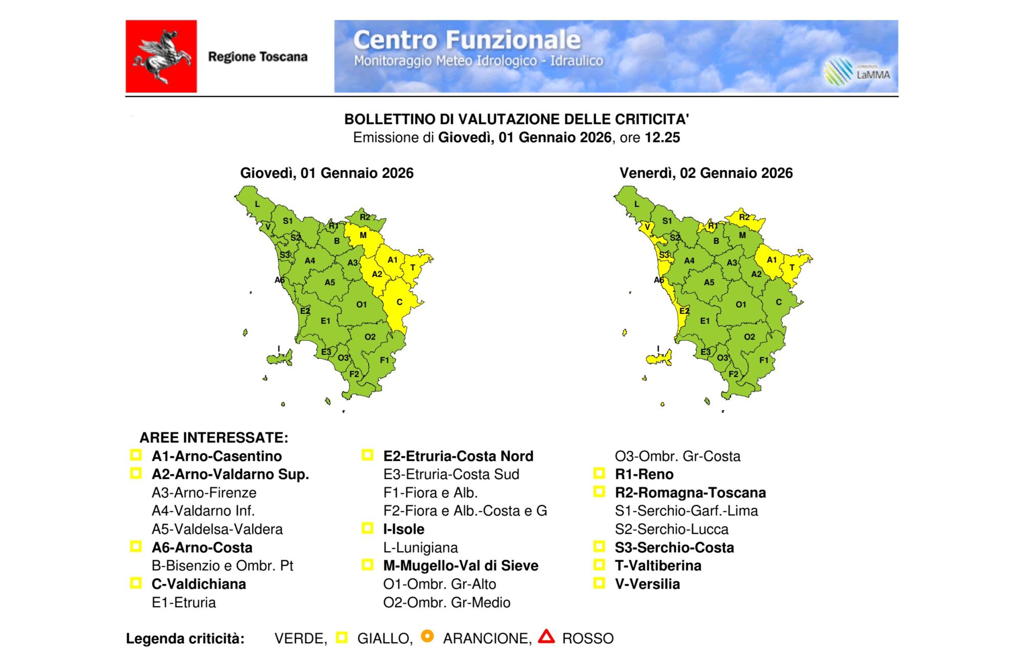 La protezione civile regionale con il bollettino meteo odierno ha diramato un avviso di criticità codice giallo per rischio mareggiate valido dalle 6 ale 23,59 di domani (2 gennaio)