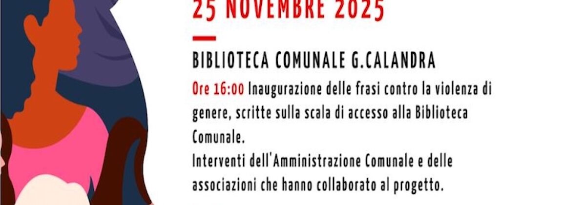 Alle ore 16, infatti, è in programma l’inaugurazione delle frasi contro la violenza di genere, scritte sulla scala di accesso alla biblioteca comunale ‘G. Calandra’. Nell’ambito di questo appuntamento sono previsti i saluti dell’amministrazione comunale e dei rappresentanti di tutte le associazioni che hanno aderito e collaborato alla realizzazione del progetto.