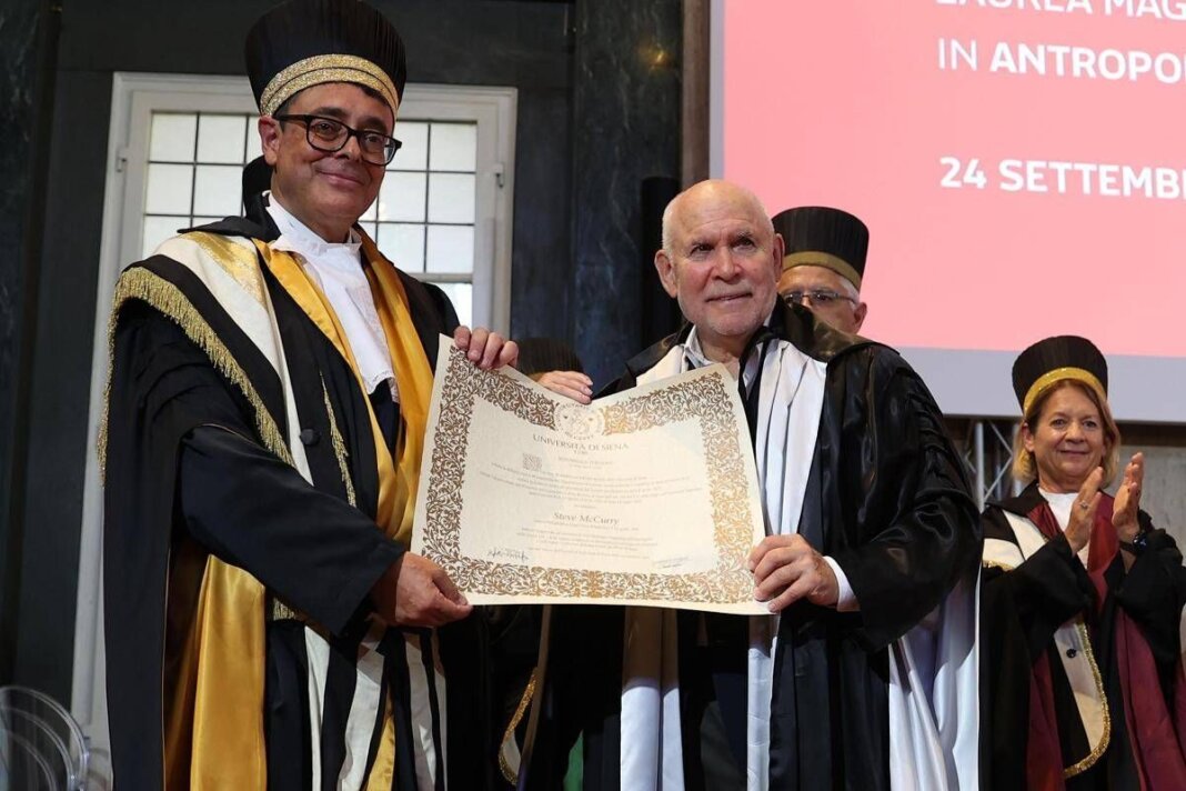 (Adnkronos) – “Un uomo sempre fedele a sé stesso e coerente con i suoi valori e la sua visione del mondo e, insieme, un narratore visivo per il quale non conta solo la meta da raggiungere, ma tutto ciò che accade lungo il viaggio”. Con la sottolineatura di questi tratti umani e professionali, l’Università di Siena ha celebrato Steve McCurry, tra i più grandi maestri della fotografia contemporanea, conferendogli oggi, mercoledì 24 settembre, la laurea magistrale ad honorem in “Antropologia e linguaggi dell’immagine”.
