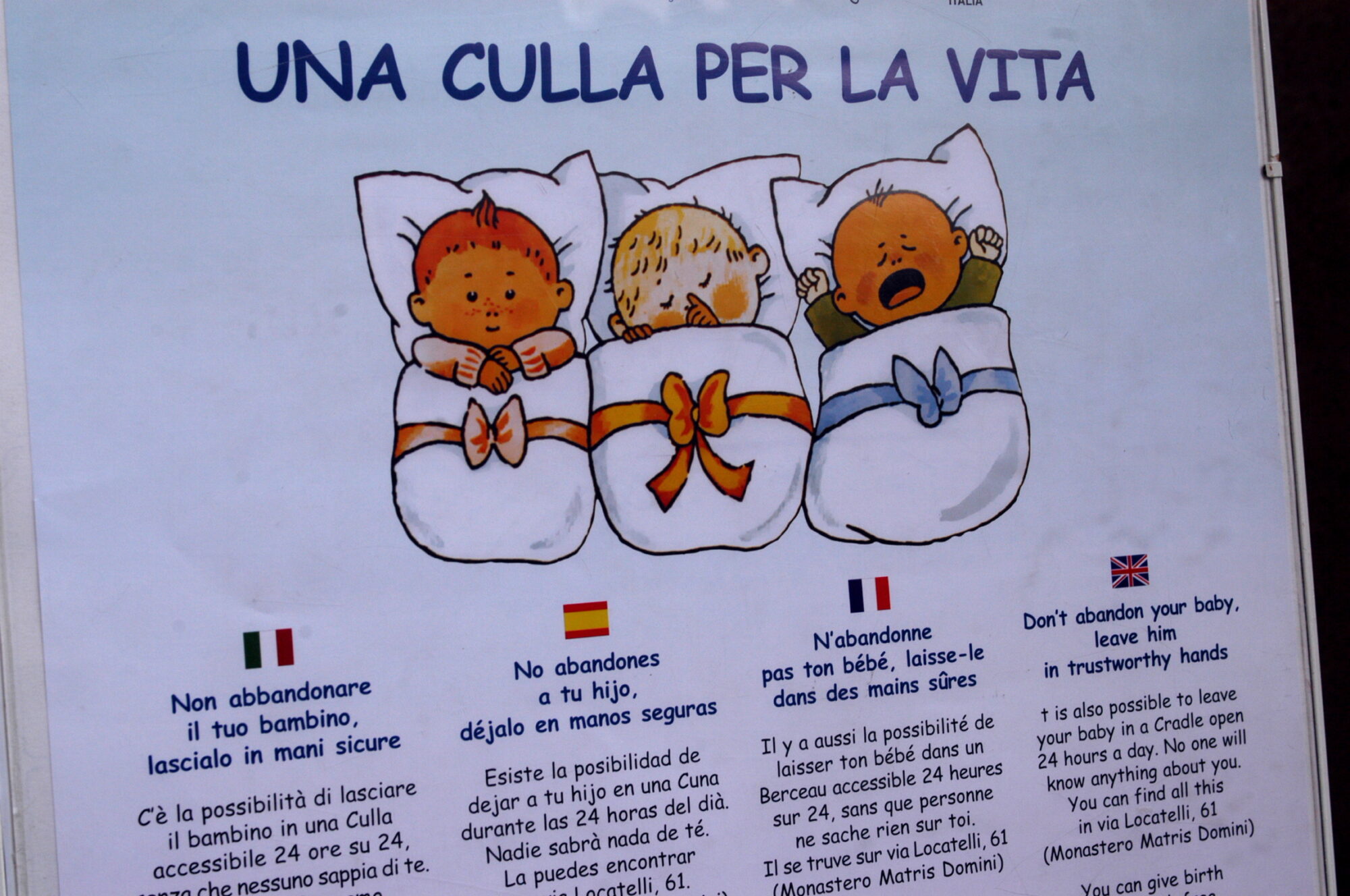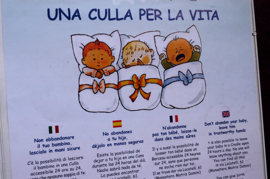 Le culle per la vita sono la versione tecnologica delle antiche ruote degli esposti, antichi dispositivi girevole in legno, solitamente collocati nei pressi di conventi e ospedali, nei quali era possibile lasciare il proprio bambino in modo anonimo e sicuro, garantendo loro accoglienza. Di culle per la vita si stima ne esistano circa sessanta in Italia, di cui undici in Lombardia. Sono dispositivi legati a strutture sanitarie che consistono in un locale protetto dove, premendo un pulsante, si attiva l’apertura di un’incubatrice riscaldata e climatizzata. Non appena il bambino viene adagiato e lo sportello richiuso, una segnalazione immediata allerta il personale medico o il 118, garantendo al contempo che chi ha lasciato il piccolo non incorra nel reato di abbandono di minore.