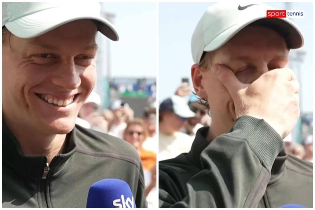 Ai microfoni di SkySport, mentre cercava di articolare un’analisi sul match appena giocato, Sinner ha guardato davanti a sé ed è scoppiato a ridere, probabilmente divertito da qualche comportamento dello staff o degli amici in tribuna.