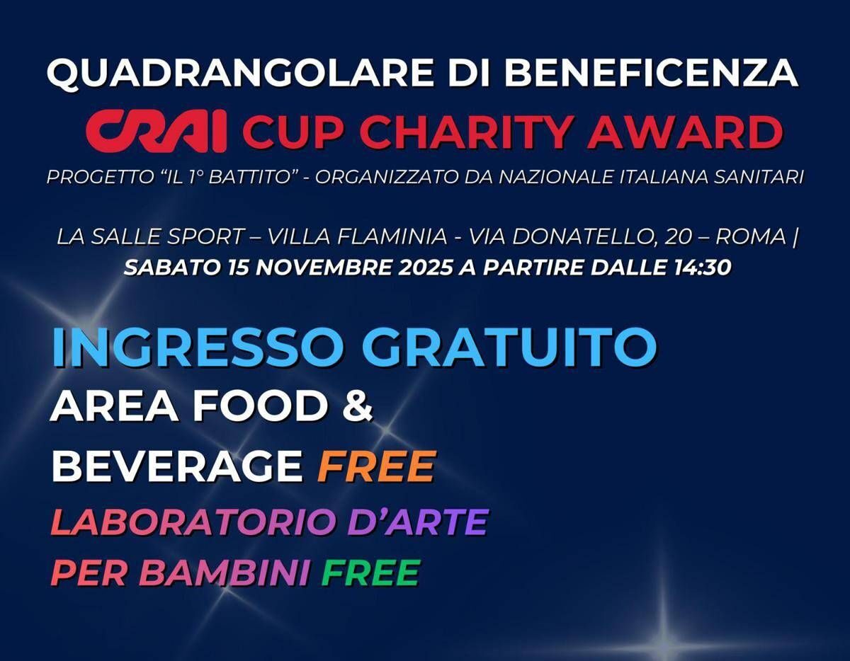 Il primo grande evento legato al progetto sarà il quadrangolare di beneficenza ‘Crai Cup Charity Award’, in programma sabato 15 novembre presso il Circolo sportivo La Salle Sport, a partire dalle 14.30. “Il ricavato sarà devoluto al 100% a sviluppare progetti destinati al reparto di Oncologia pediatrica del Policlinico Umberto I di Roma. In campo scenderanno 4 squadre d’eccezione: Nazionale italiana sanitari (Nis); Nazionale italiana giornaliste e giornalisti (Nig); selezione ufficiale Fideuram Private Banker; Nazionale italiana campioni olimpionici (Nico). Una giornata di sport, solidarietà e condivisione, aperta a famiglie, bambini, appassionati e a tutti coloro che desiderano sostenere questa importante causa”, conclude la nota.