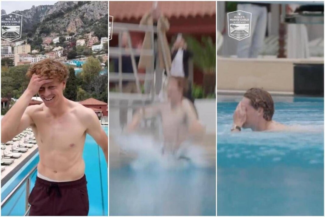 Dopo la cerimonia di premiazione e la conferenza stampa, Sinner ha condiviso un momento fin qui inedito con il suo staff. L’azzurro si è infilato un costume, salendo sul gradino più alto del trampolino del circolo di Montecarlo e ha deciso di tuffarsi in piscina.
