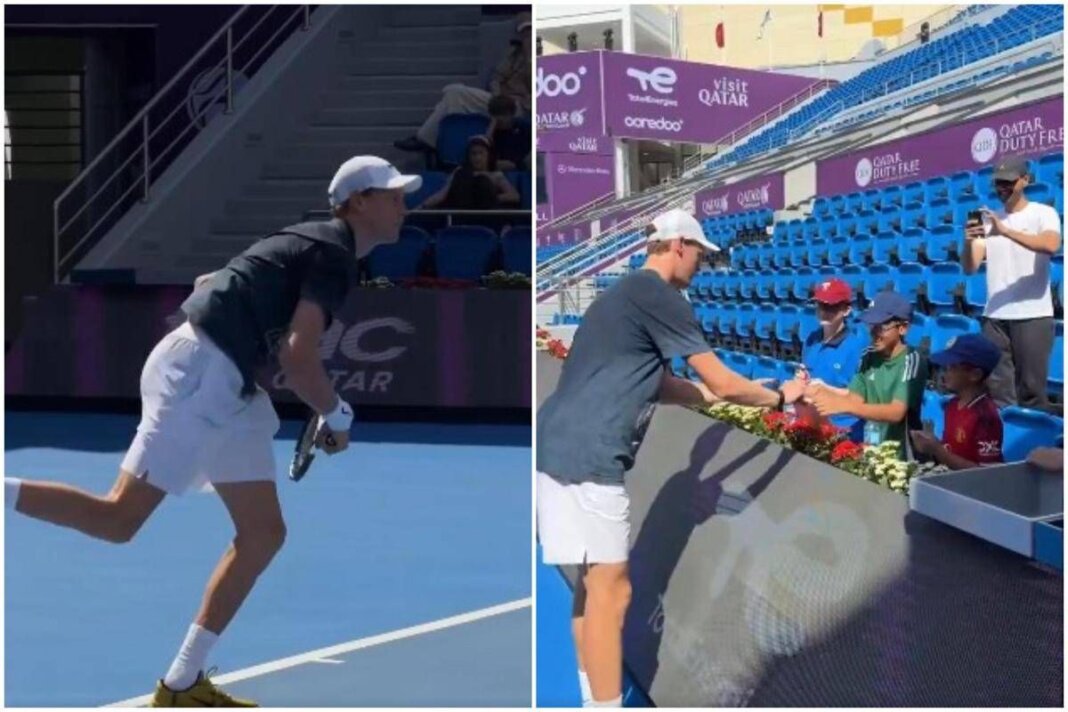 Jannik Sinner è a Doha. Oggi, sabato 14 febbraio, il tennista azzurro è sceso in campo per testare il cemento qatariota, nel suo primo allenamento in vista dell’Atp 500 al via lunedì 16 febbraio. Tanti sorrisi in campo per Sinner, che guidato dall’allenatore Simone Vagnozzi e dal suo team ha eseguito un breve riscaldamento, con scatti e ed esercizi per allenare i riflessi, prima di impugnare la racchetta.