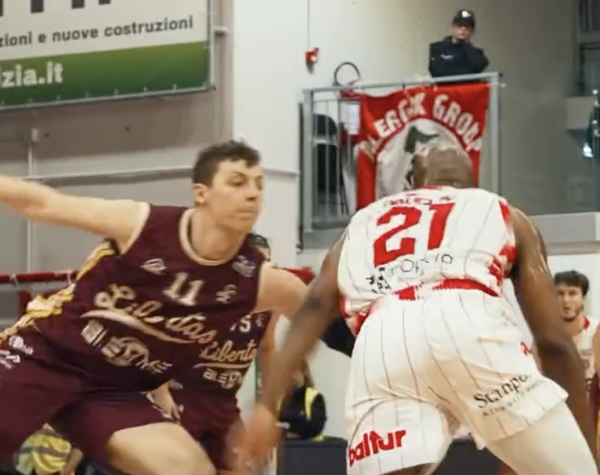 L’approccio alla gara della Libertas è da incubo. Cento parte con le marce altissime, trascinata da un Tanfoglio ispirato e dalle triple di Conti, scavando immediatamente un solco profondo che tramortisce gli amaranto. Il primo quarto si chiude sul 27-11, un gap severo che mette subito la partita in salita per Diana e i suoi. Nel secondo periodo la musica non cambia: la Libertas soffre terribilmente la precisione balistica di Montano, che colpisce a ripetizione dall’arco portando gli emiliani anche sul +19. Solo la caparbietà di Possamai sotto canestro permette agli ospiti di non naufragare completamente prima del riposo lungo (47-30).