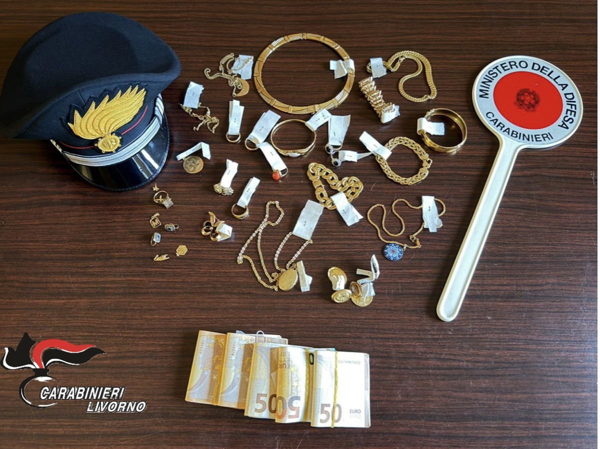 Nel corso di un servizio svolto in abiti civili, i carabinieri hanno notato un uomo che, nell’uscire da un condominio del centro cittadino con fare circospetto, ha introdotto una busta in una borsa che portava a tracolla. I militari, insospettiti, hanno deciso di seguirlo, notandolo salire su un’autovettura la quale, da immediati accertamenti, è risultata noleggiata nel capoluogo campano. Dopo essersi diretto verso Pisa, l’auto è stata fermata con l’ausilio di una pattuglia dei carabinieri di Migliarino Pisano e, dopo essere apparso fin da subito nervoso, è stata eseguita una perquisizione personale che ha portato al rinvenimento di 5mila euro in contanti nonché oltre 300 grammi di monili in oro con un valore di mercato stimato in circa 40mila euro. Considerate le circostanze e l’impossibilità di giustificare il possesso dei beni, ritenuto quindi responsabile della commissione di un reato perpetrato all’interno della palazzina dalla quale era stato visto uscire, l’uomo è stato portato nella caserma di viale Fabbricotti per ulteriori accertamenti.