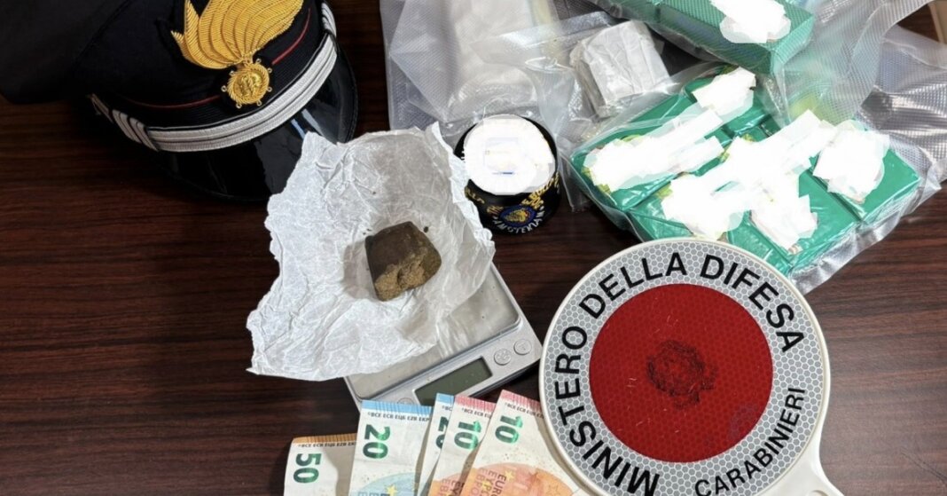 I militari hanno quindi deciso di approfondire effettuando una perquisizione d’iniziativa dell’abitazione e del 20enne sorpreso all’interno, già noto alle forze dell’ordine. L’attività, oltre a confermare l’ipotesi investigativa, ha permesso di rinvenire e sequestrare nell’appartamento, nella disponibilità del giovane e con verosimili finalità di cessione a terzi, più di un chilo di hashish, oltre a materiale per pesatura e confezionamento, nonché denaro contante ritenuto provento di spaccio. Quanto rinvenuto è stato prontamente sequestrato.