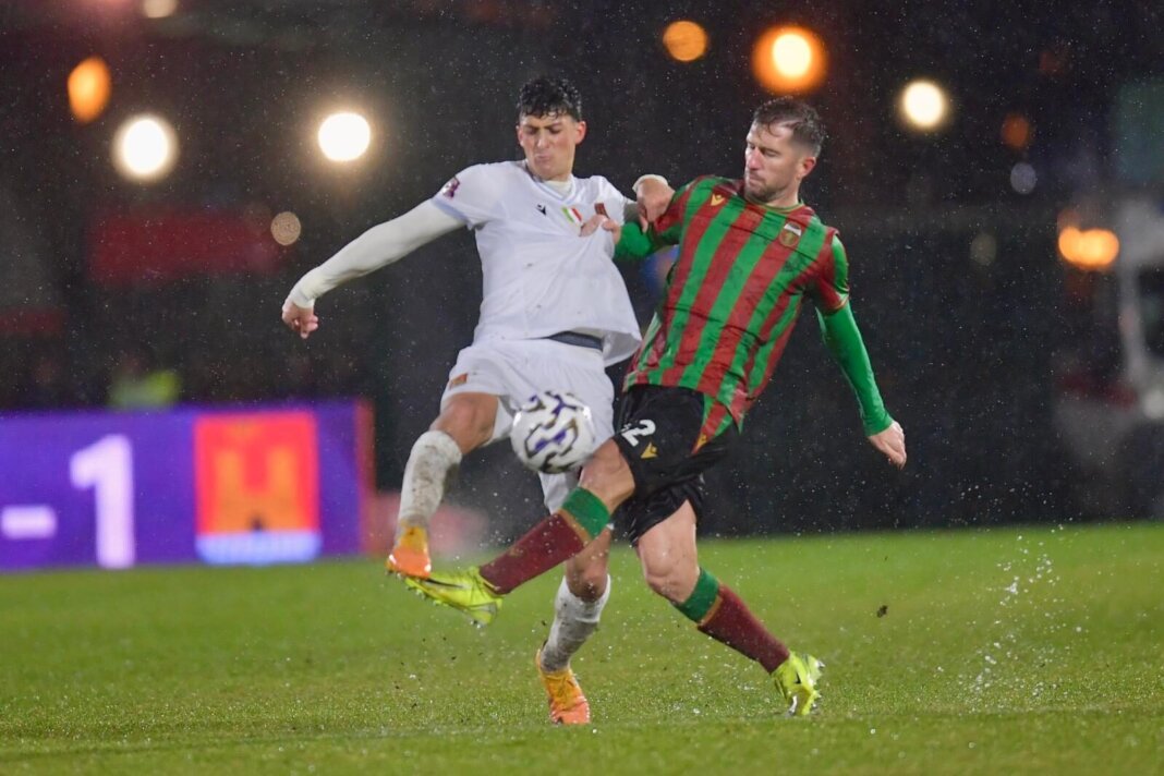 Gli amaranto esconi sconfitti dal Libero Liberati di Terni al termine di una battaglia condotta su un terreno di gioco ai limiti della praticabilità, appesantito da una pioggia battente che ha reso alcune zone del campo vere e proprie pozzanghere. L’avvio dei labronici è però arrembante: dopo un brivido iniziale per un colpo di testa di Pettinari neutralizzato da Seghetti, gli amaranto sbloccano il match al sesto minuto grazie a una perla di Biondi, che dal limite sinistro lascia partire un fendente telecomandato sotto l’incrocio dei pali, non lasciando scampo a D’Alterio. Il vantaggio dura però soltanto cinque minuti, perché la Ternana reagisce immediatamente approfittando di una palla recuperata da Dubickas; il suggerimento di Orellana trova Kerrigan pronto alla deviazione vincente sotto la traversa per il pareggio, convalidato dopo un consulto con la tecnologia.