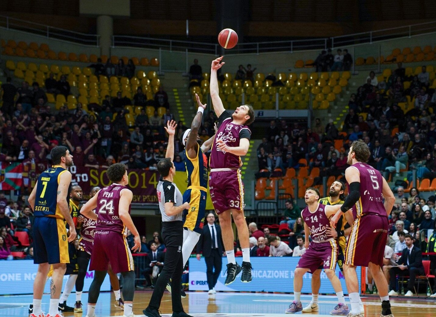 Al rientro dagli spogliatoi la difesa amaranto sale in cattedra, blindando l’area e costringendo Scafati a tiri forzati e numerosi errori. Penna ispira i compagni, servendo assist al bacio per Tozzi e Tiby, portando la Libertas al massimo vantaggio sul 54-45. Un canestro fortunoso di Filloy e la solidità di Iannuzzi sotto le plance permettono ai padroni di casa di chiudere il terzo quarto sul 61-49, con il PalaMacchia ormai diventato una bolgia.