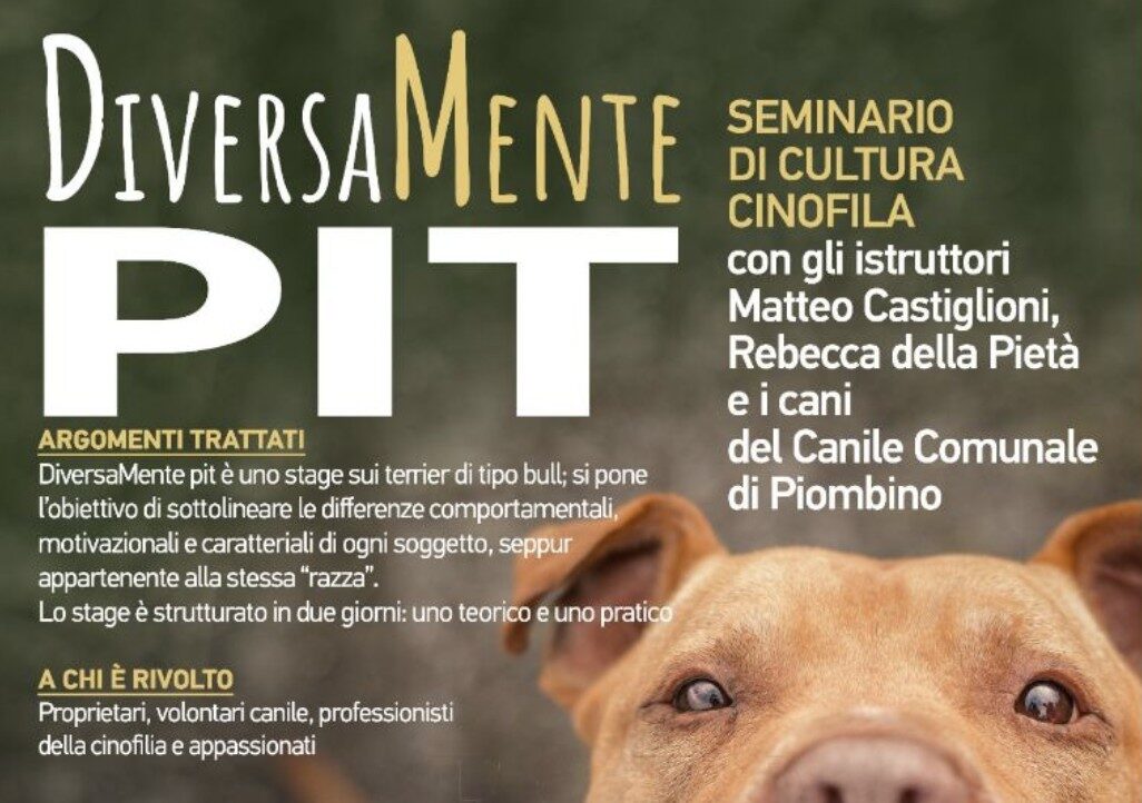 DiversaMente Pit è uno stage formativo e divulgativo che mira a valorizzare le differenze comportamentali, motivazionali e caratteriali di ogni cane, anche all’interno della stessa razza. Il percorso prevede due giornate di lavoro, una teorica e una pratica ed è rivolto a proprietari, volontari, professionisti della cinofilia e appassionati.