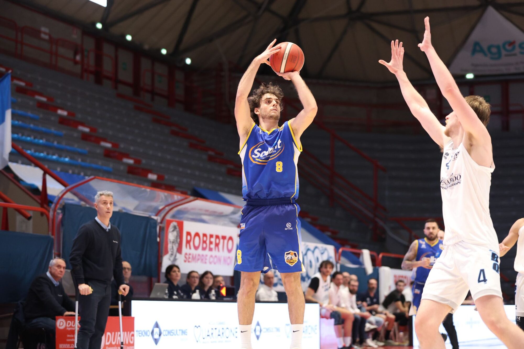 L’avvio dei ragazzi di coach Bianchi è di quelli che lasciano il segno: un parziale di 15-8 dopo appena cinque minuti mette subito in chiaro le intenzioni gialloblù. Nonostante l’uscita anticipata della stella Nik Raivio, gravato da problemi di falli dopo soli 6 minuti, Piombino non si scompone. Con un attacco fluido e una precisione chirurgica da dentro l’area, il Golfo chiude la prima frazione avanti 25-30, trascinato da un Giunta in stato di grazia. Nel secondo quarto la musica non cambia, anzi: il vantaggio tocca il massimo di +13, permettendo ai gialloblù di andare al riposo lungo con un tesoretto rassicurante (41-50) e percentuali al tiro irreali (13 su 16 da due).