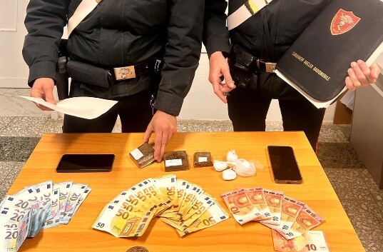 Gli agenti hanno bloccato i due che, in esito al controllo, scaturito anche dal loro atteggiamento circospetto alla loro vista, sono stati colti in possesso di ben 35 grammi di cocaina, 3 panetti di hashish per un totale di 250 grammi complessivi e 1200 euro in banconote di piccolo taglio, verosimilmente provento dell’attività illecita. Non sono mancati alcuni indicatori, materiali di confezionamento bilancino, che comunque collocherebbero gli indagati in un circuito dello spaccio di sostanze nel cecinese.