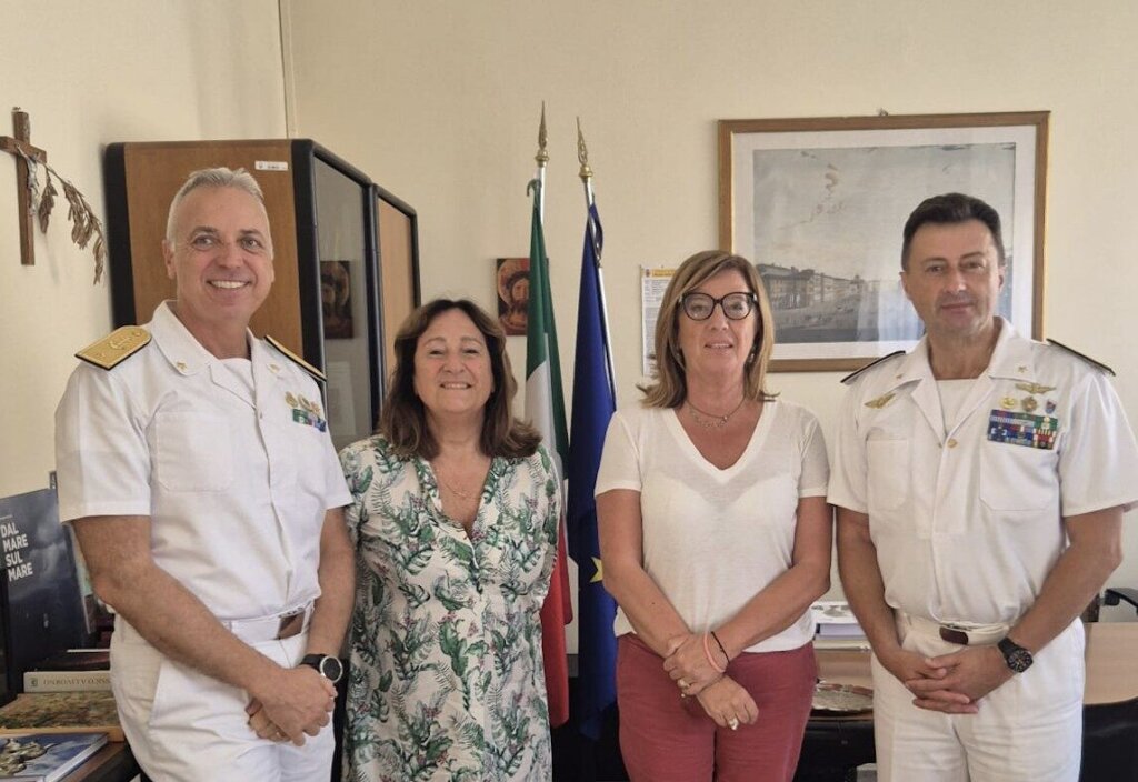 LIVORNO – La presidente della Provincia, Sandra Scarpellini, insieme alla vice presidente Eleonora Agostinelli, ha ricevuto oggi (4 settembre) a Palazzo Granducale, il comandante uscente dell’Accademia Navale di Livorno, contrammiraglio Lorenzano Di Renzo e il suo successore pari grado Alberto Tarabotto,per uno scambio di saluti istituzionali in vista dell’avvicendamento alla guida della prestigiosa istituzione della Marina italiana.