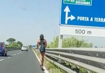 LIVORNO – In monopattino sulla variante Aurelia, rischiando di essere travolta dalle auto che sfrecciavano a 90 chilometri orari e salvata dalla polizia stradale.