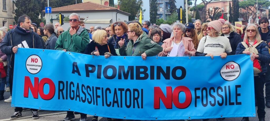 Tanta gente alla manifestazione nazionale a Piombino oggi pomeriggio sabato 11 marzo organizzata dalla Rete No Rigass No Gnl e dagli ideatori della campagna ‘Per il Clima, fuori dal fossile’.