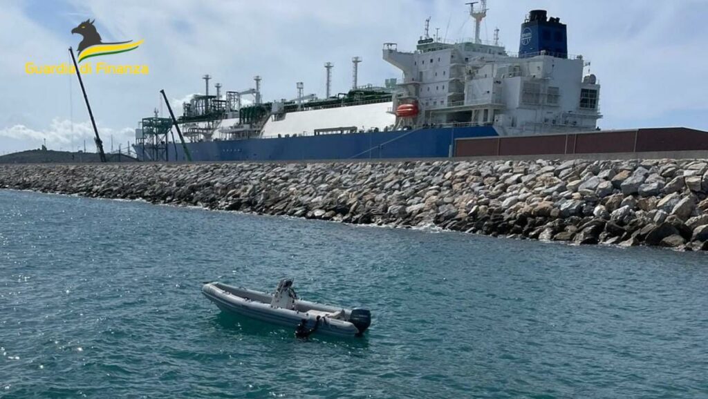 In particolare, si legge in una nota della Guardia di Finanza, “durante una crociera operativa di vigilanza nello specchio acqueo adiacente alla motonave Golar Tundra giunta in toscana il 19 marzo e attualmente ormeggiata a Piombino per la fase di adeguamento dell’infrastruttura dedicata al rigassificatore, i militari individuavano un gommone fermo, all’ancora”.