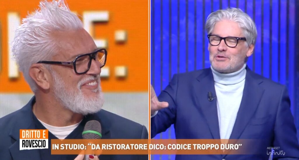 Con il giornalista Paolo Del Debbio, conduttore di ‘Diritto e Rovescio’ talmente entusiasta dell’idea: “Allora io ci vengo tutte le sere. Io sono di Lucca. Mi ci riporta a Lucca?”
