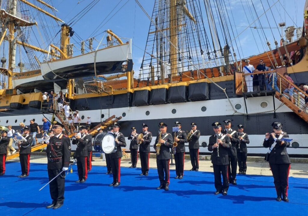 La nave scuola della Marina Militare a Livorno dopo due anni, dopo il tour mondiale, è stata accolta nel porto toscano da una cerimonia di benvenuto con l’inno di Mameli eseguito dalla banda della Brigata Folgore e dalla Fanfara dell’Accademia Navale alla presenza delle autorità civili e militari cittadine, il presidente della Regione Eugenio Giani, la presidente della Provincia Sandra Scarpellini e l’assessora alla cultura del comune Angela Rafanelli, insieme al prefetto di Livorno Giancarlo Dionisi, l’ammiraglio di divisione Flavio Biaggi, comandante interregionale Marittimo Nord, e il comandante della direzione marittima di Livorno contrammiraglio Giovanni Canu.