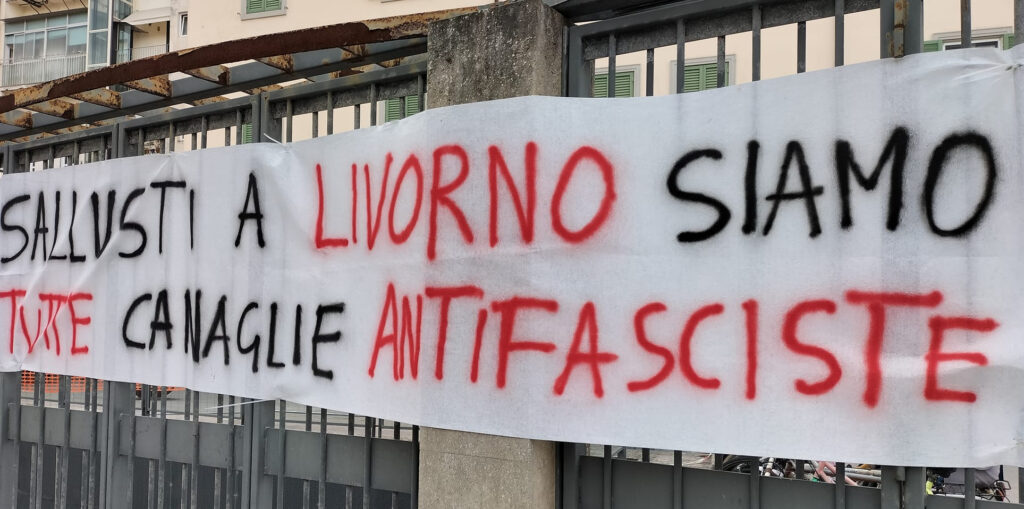 Per il giornalista anche lo striscione ‘Sallusti, a Livorno siamo tutte canaglie antifasciste’.