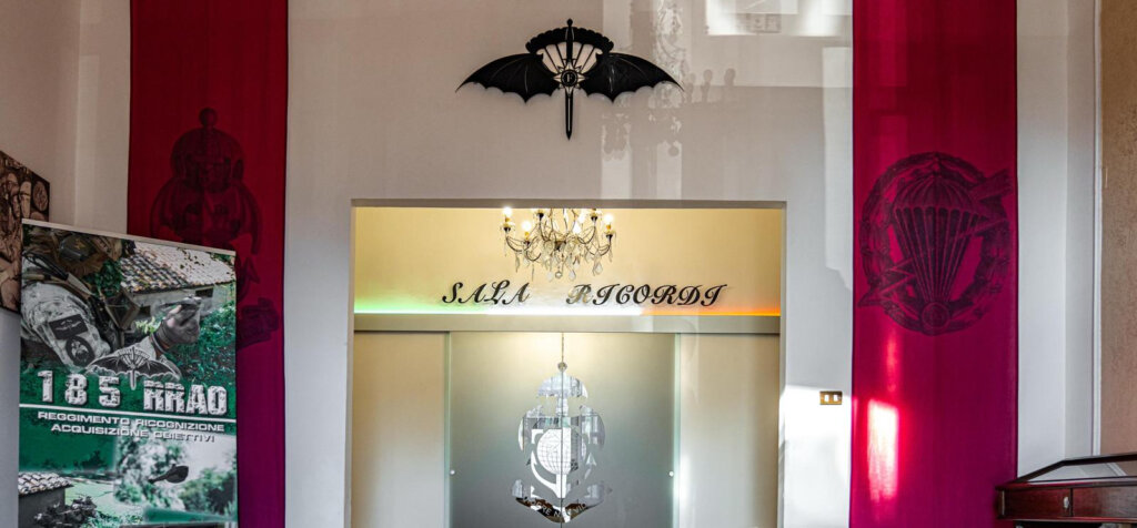Una ‘Sala ricordi’ piccolo museo in cui sono conservate anche le cittadinanze onorarie che il 185° Reggimento ha avuto per i fatti storici che hanno visto Lo Squadrone F protagonista nella campagna d’Italia dal 1943 al ’45. E anche altri oggetti della storia recente del RAO, che è stato configurato il 3 aprile del 2000.