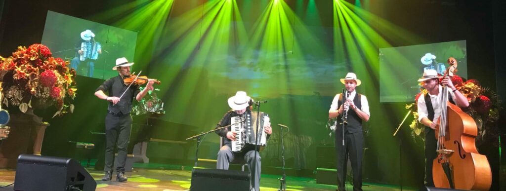 Protagonisti di Alexian Group che inaugura il Festival: Alexian Santino Spinelli, voce e fisarmonica, Silvia Faugno, voce, Gennaro Spinelli, violino, Francesco Mancini, basso e contrabbasso, Fausto della Torre, percussioni.