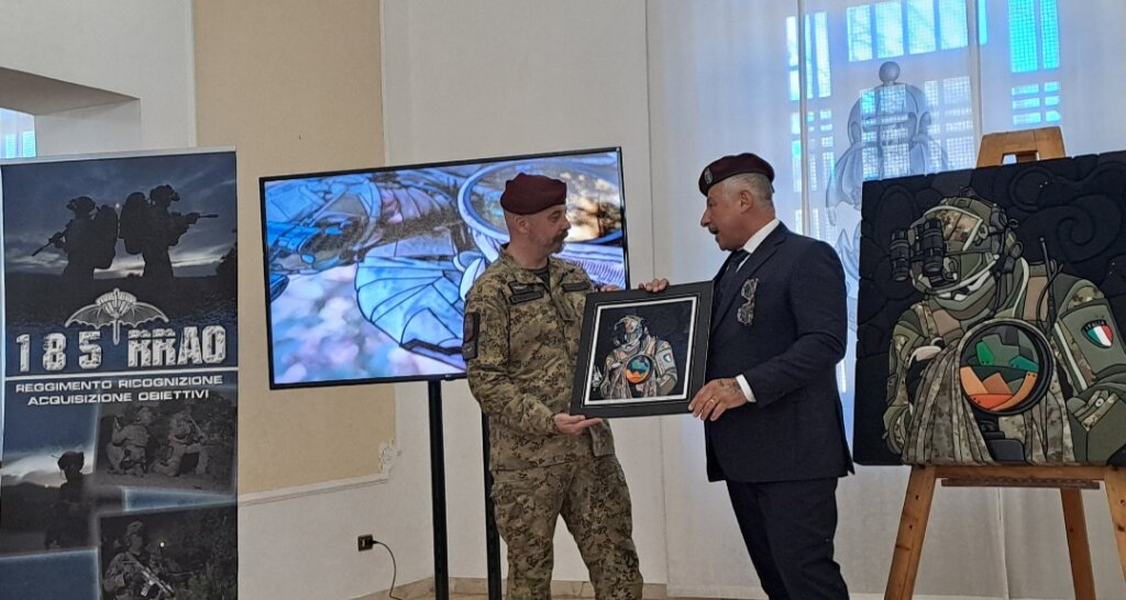 La cerimonia lunedì 10 marzo. Il maestro d’arte Bressani ha consegnato al comandante, il colonnello Marco Margutti, un’opera realizzata in occasione del 25° anniversario della riconfigurazione del reggimento. Il 3 aprile 2000, il 185° Reggimento Artiglieria Paracadutisti si trasformò nel 185° Reggimento Ricognizione Acquisizione Obiettivi ‘Folgore’, assumendo un ruolo chiave nell’intelligence militare.