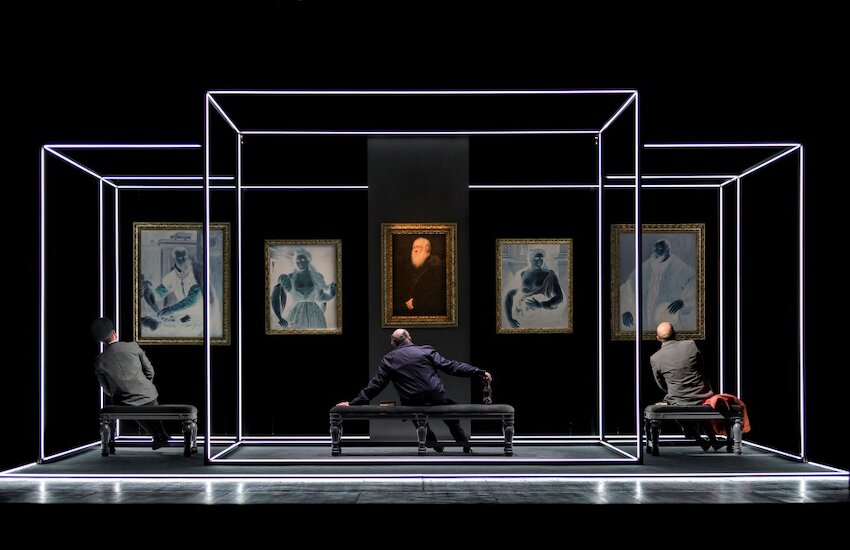 Tutto lo spettacolo ruota intorno al concetto di arte e sulla sua bellezza, partendo da un musicologo che, nella Sala Bordone della Pinacoteca di Vienna, si siede e guarda un famoso quadro di Tintoretto. Un gesto che compie, sempre uguale, ogni due giorni da più di trent’anni. In scena, poi, apparirà un secondo uomo, uno scrittore, più giovane, che osserva il musicologo che guarda il quadro. Un terzo uomo, uno dei custodi della Pinacoteca, osserva entrambi.