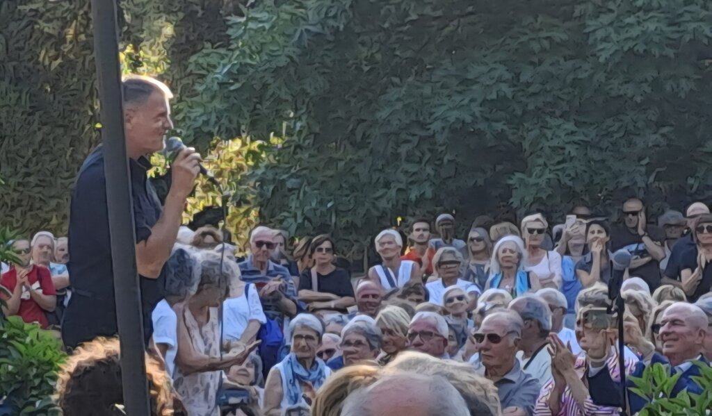 Standing ovation per lo scrittore, drammaturgo, autore teatrale, toscano, cresciuto a Campi Bisenzio, direttore artistico del Teatro della Toscana, nonché unico italiano a trionfare negli Stati Uniti ai Tony Award, con ‘Lehman Trilogy‘, sul palco nel parco di Villa Fabbricotti per presentare il suo ultimo libro ‘Donald. Storia molto più che leggendaria di un Golden man’, Einaudi.