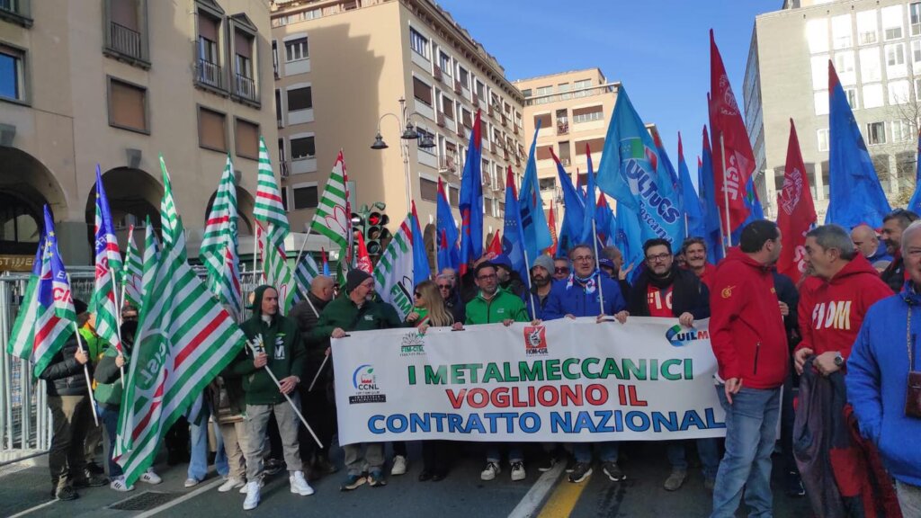 “Questa non è solamente una manifestazione per il rinnovo del contratto nazionale, ma è per rivendicare quello che per noi è un principio di giustizia – ha detto Fabio Bernardini, segretario nazionale Fim Cisl – Sindacato significa tenere insieme con giustizia e tenere insieme con giustizia lavoratrici e lavoratori significa garantire loro un salario, tutele e diritti uguali per tutti. Quello di oggi ripeto non è uno sciopero solo per il contratto ma uno sciopero per rivendicare quello che per noi è un principio di giustizia che la Confindustria e Federmeccanica vogliono tradire”.