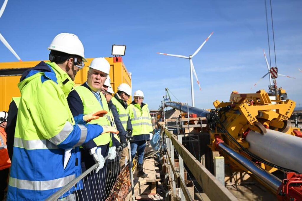 Giani prima ha visitato il cantiere nella palude attorno al parco eolico dove la condotta che arriverà dal porto, passando sotto ad un braccio di mare di un chiometro e duecento metri, spiega Regione Toscana, si allunga lungo il litorale per poi deviare