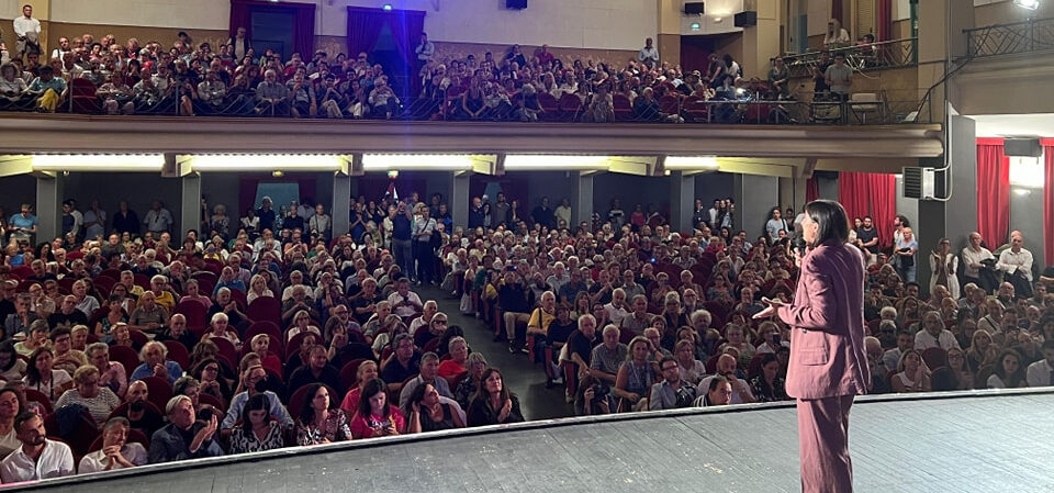 Teatro ‘I 4 Mori’ di Livorno gremito, gente in piedi per Elly Schlein.