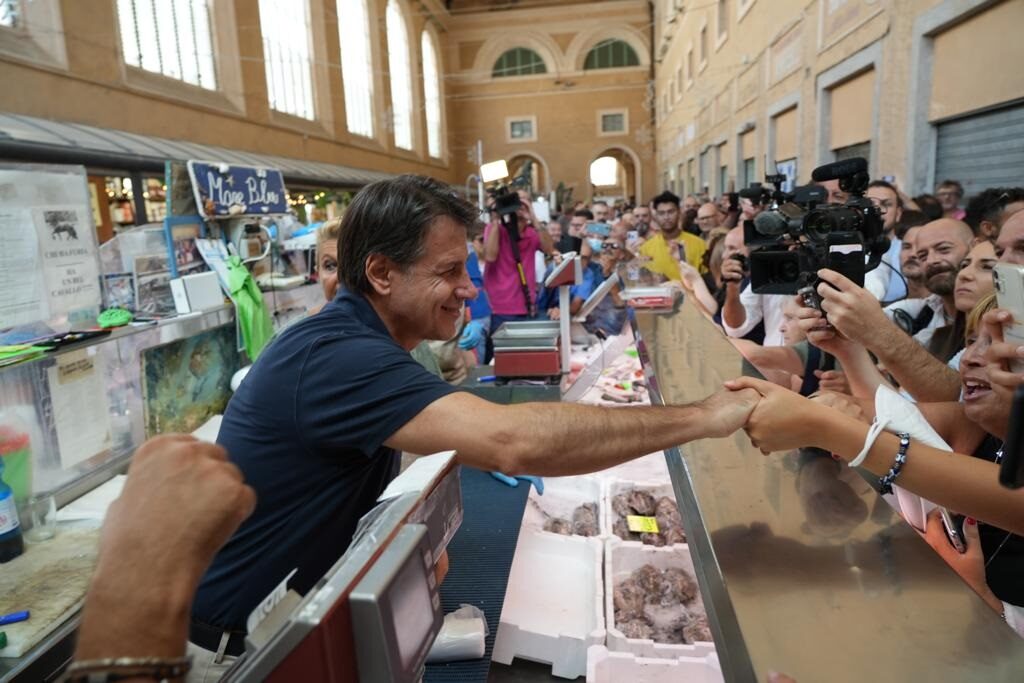 “Presidente, ci siamo anche noi fuori con i i banchi. C’è un mercato anche fuori. Passa anche da noi?” “Arrivo subito da voi”, risponde all’invito Conte.