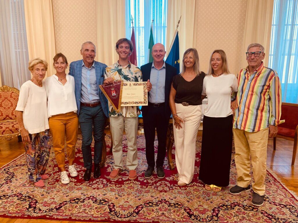 LIVORNO – Giornate di celebrazioni sportive a Palazzo Comunale. Questa mattina, nella Sala Cerimonie, il sindaco Luca Salvetti ha consegnato una pergamena ad Antonio Gasperini, giovane velista livornese distintosi ai Waszp Games di Weymouth (Gran Bretagna), dove ha conquistato uno straordinario terzo posto. Alla cerimonia erano presenti anche i familiari dell’atleta, emozionati per il prestigioso riconoscimento.