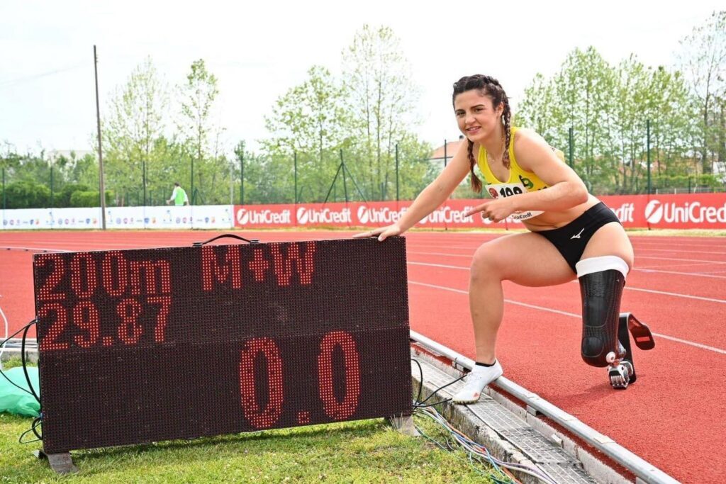 Ambra Sabatini frantuma il record del mondo nei 200 metri T63 stabilendo il tempo di 29.87 a Jesolo, Venezia, nell’ultima giornata degli Italian Open, il meeting internazionale del circuito World Para Athletics Grand Prix. L’atleta toscana, nata a Livorno e cresciuta a Porto Ercole, medaglia d’oro dei 100 metri alle Paralimpiadi di Tokyo, è la prima atleta al mondo a scendere sotto i trenta secondi. Per la ventenne campionessa un miglioramento di quasi due secondi rispetto al precedente primato mondiale che apparteneva dal 2015 a un’altra campionessa azzurra, Martina Caironi con 31.73 stabilito a Berlino.