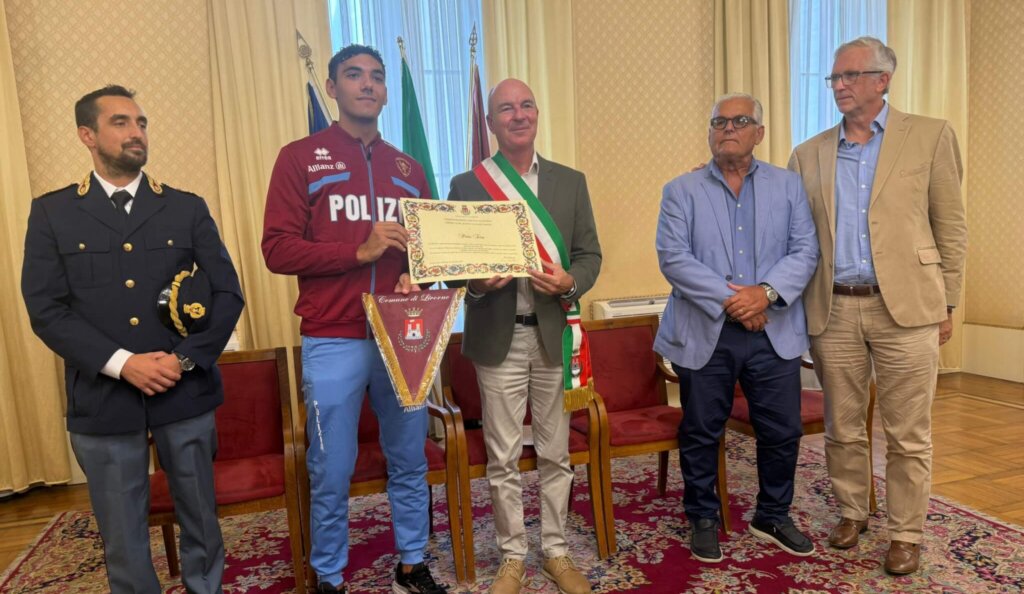 LIVORNO – Questa mattina (12 settemre) nella sala cerimonie di palazzo comunale, il sindaco di Livorno Luca Salvetti ha consegnato una pergamena a Pietro Torre, giovane schermidore livornese campione del mondo di sciabola a squadre.