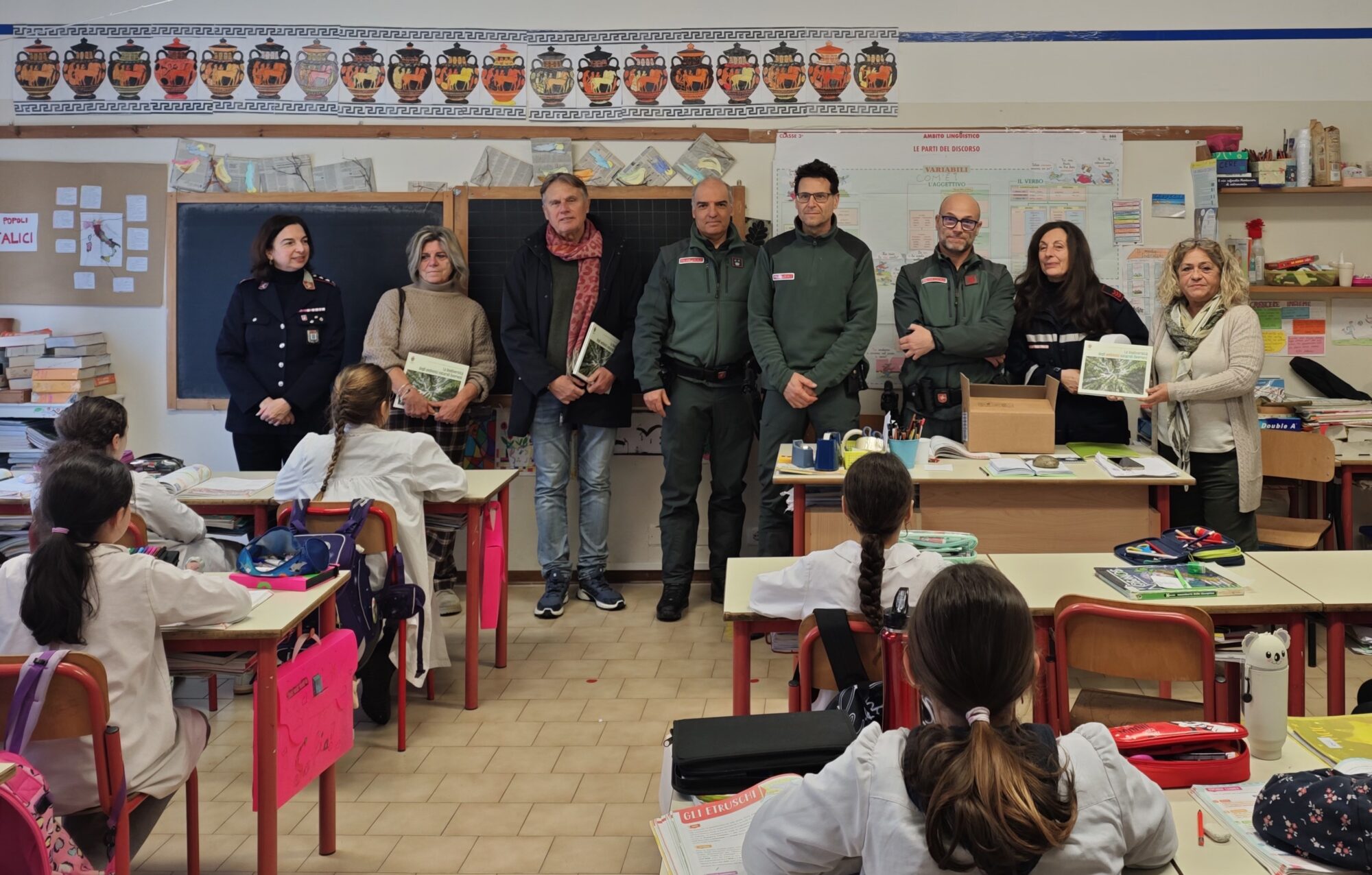Gli alunni e le alunne della primaria sono rimasti incantati dalle immagini prese da vicinissimo di uccelli rari e farfalle, di gabbiani e testuggini palustri, di aironi cinerini e usignoli di fiume. Questo e molto altro è contenuto del libro che, ha consigliato l’agente Moretti, “dovreste prendere in prestito, ciascuno di voi, per una settimana in modo da poter ammirare con calma gli ambienti naturali gli animali del nostro magnifico territorio”. Affascinante anche la fotografia che illustra la copertina del volume, accompagnata da un detto dei nativi americani: “Gli alberi sono le colonne del mondo. Quando gli ultimi alberi saranno stati tagliati, il cielo cadrà sopra di noi”.