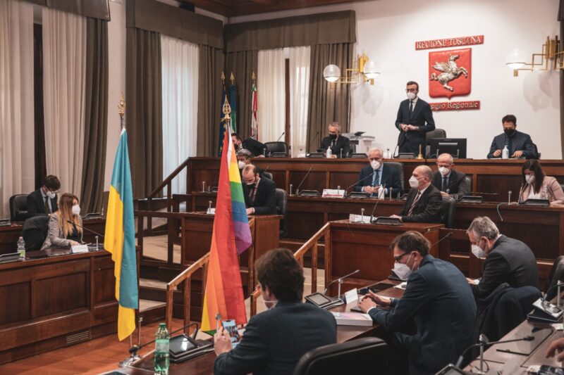 FIRENZE – Tutti in piedi per un minuto di silenzio per ricordare e celebrare le vittime della guerra in Ucraina. È cominciato così, dopo l’invito al raccoglimento rivolto ai consiglieri regionali dal presidente del Consiglio regionale della Toscana Antonio Mazzeo, la seduta straordinaria del primo marzo 2022 dedicata al conflitto in corso tra Russia e Ucraina. Nell’aula istituzionale la bandiera dell’Ucraina e quella della pace. Antonio Mazzeo: “Una seduta richiesta e condivisa da tutte le forze politiche. Un momento in cui anche da questa aula viene fuori un grido di dolore per quello che sta avvenendo in Ucraina. Una risposta piccola che possiamo dare ai fatti drammatici di questi giorni”. Poi Mazzeo: “Abbiamo vissuto a Firenze e in tante città della regione un’aria di vicinanza, bella in un momento così difficile. Sono partiti messaggi importanti per tutta la comunità internazionale. La pace invocata qui in Toscana, terra di diritti, spero possa giungere fino nell’est europeo, fino in Ucraina, Paese dove si sta combattendo una guerra senza senso e che rappresenta un attacco ai valori, alla storia e al senso stesso dell’Unione Europea”.
