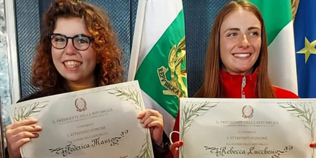 “Vi ringrazio per quanto avete fatto. Dagli episodi e dai comportamenti che avete posto in essere emerge un’esortazione a migliorare il modo di vita del nostro Paese, a renderlo uniforme a questi valori di aiutarsi vicendevolmente. Sono certo che nel futuro manterrete questi sentimenti e queste attitudini. E questo fa avere fiducia nel futuro del nostro Paese. Questo è il migliore investimento per il futuro del nostro Paese”. Federica Mauro, 18 anni, di Arezzo, e Rebecca Lucchesi, 17 di Bagni di Lucca, hanno ricevuto oggi, 14 dicembre 2021, dal presidente Mattarella l’attestato di Alfiere della Repubblica. A Federica e Rebecca e agli altri 28 ragazzi giunti al Quirinale provenienti da varie parti d’Italia, Mattarella ha riservato parole importanti “Avete dimostrato che i giovani sono portatori di questi valori: solidarietà, sostegno reciproco, senso della vita comune e della convivenza”. Federica Mauro è Alfiere della Repubblica, recita la motivazione, ‘Per aver scoperto che la pittura può essere più forte della sua condizione di difficoltà’. Rebecca Lucchesi perché ‘Nonostante la giovane età, svolge un ruolo essenziale nel comitato della Croce Rossa di Bagni di Lucca’.