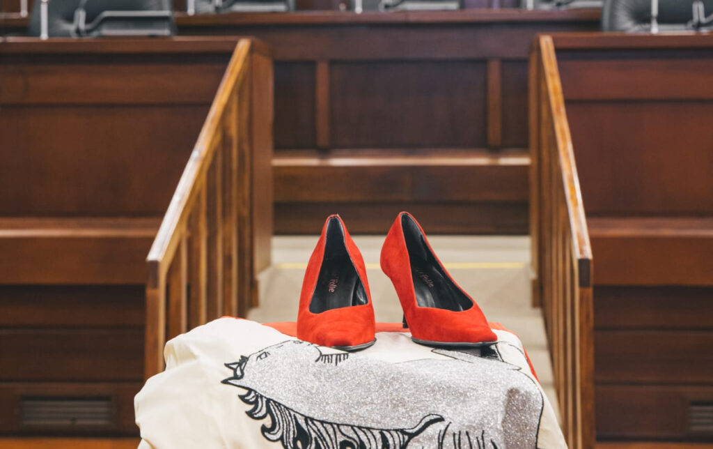 Nell’aula del Consiglio regionale della Toscana le scarpette rosse.