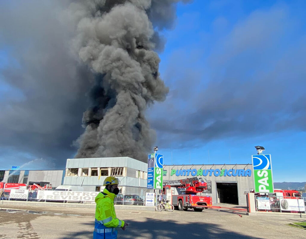 Emergenza a Empoli per un maxi incendio divampato sabato 18 novembre in un deposito di pneumatici.