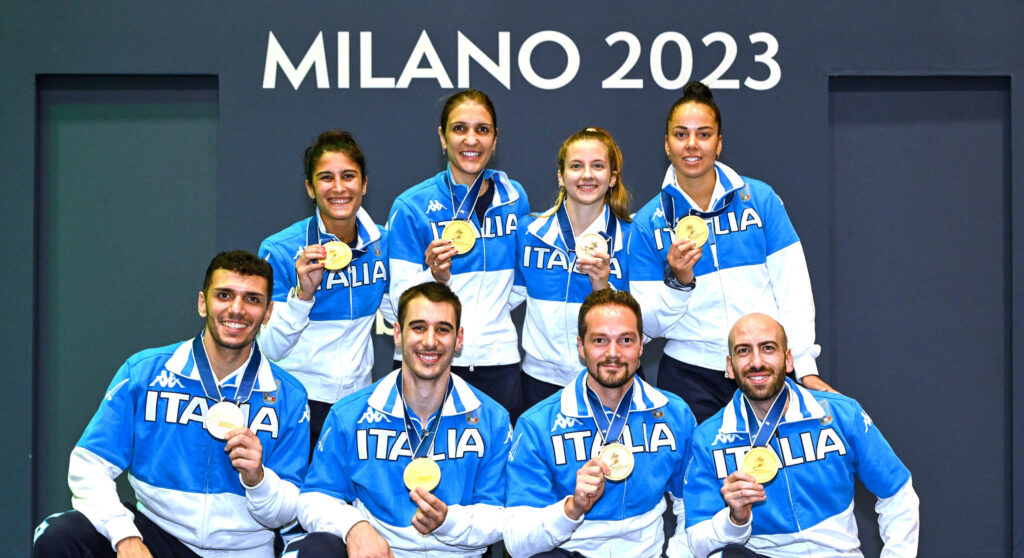E la medaglia d’oro del pisano Gabriele Cimino, che trionfa nella spada a squadre con Davide Di Veroli, Andrea Santarelli e Federico Vismara, ct Dario Chiadò.