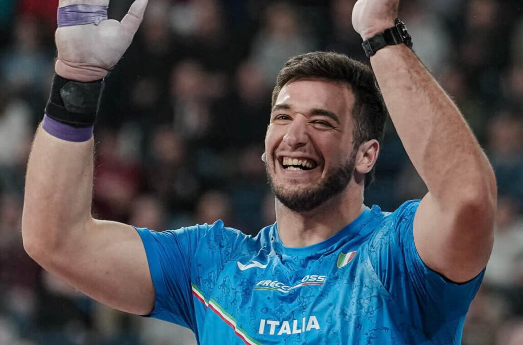 Leo Fabbri, vicecampione del mondo di Budapest 2023 e bronzo mondiale indoor Glasgow 2024, è recordman italiano del peso con 22.98.