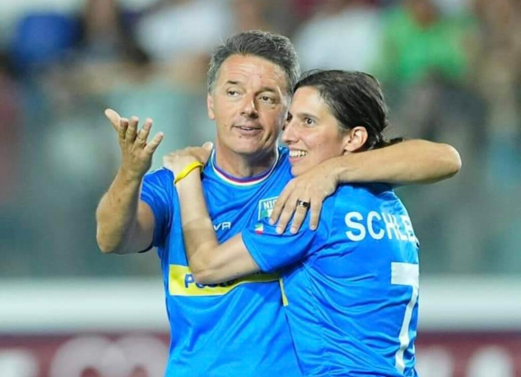 Partita del cuore, Renzi e l’abbraccio a Schlein: “Affinità calcistica” (Foto Fb Matteo Renzi)
