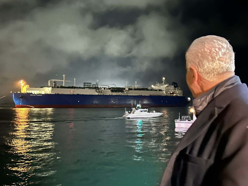 Golar Tundra dunque scortata dalla Marina Militare: “Le unità del dispositivo Operazione Mediterraneo Sicuro Oms scortano la nave metaniera e rigassificatrice Golar Tundra attraverso il mare nostrum, dall’uscita del Canale di Suez fino a destinazione. Flessibilità d’impiego e prontezza d’intervento della Squadra Navale a protezione degli interessi e delle infrastrutture della Nazione”.