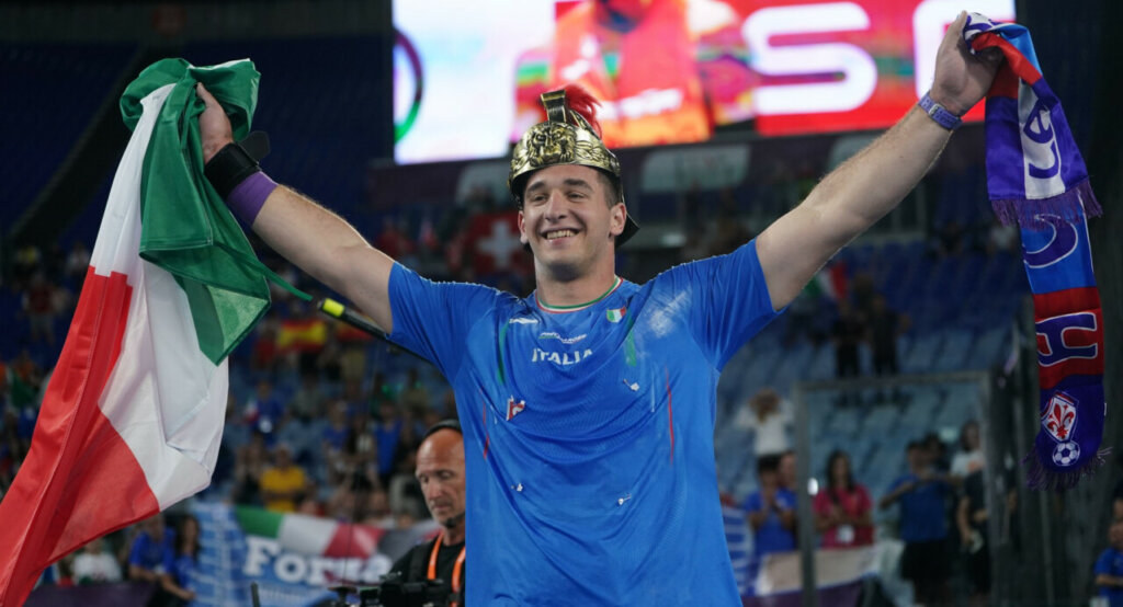 Leonardo Fabbri, vicecampione del mondo, è il primo azzurro a vincere l’oro nella storia del peso ai campionati europei. Un trionfo per il campione di Bagno a Ripoli, recordman italiano, che con 22.45 è campione d’Europa a Roma con primato dei campionati d’Europa. Oltre un metro dietro a Fabbri, che mette a segno anche un 22.12 al secondo lancio, il secondo classificato il campione uscente Filip Mihaljevic con 21.10. Terzo il polacco Michal Haratyk con 20.94.