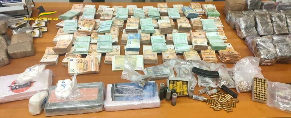 Sequestrati oltre cento chili di sostanze stupefacenti, 676mila euro in contanti, armi e munizioni.