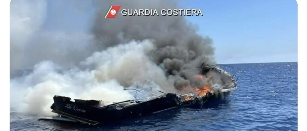 La sala operativa di Portoferraio è stata contattata intorno alle ore 12, quando il comandante dell’unità ha rilevato la presenza di una densa coltre di fumo provenire dai motori. Nel giro di poco tempo le fiamme hanno avvolto gran parte dell’imbarcazione, costringendo il comandante, Stefania Craxi e il marito ad abbandonare l’unità, affondata nel giro di poche ore.