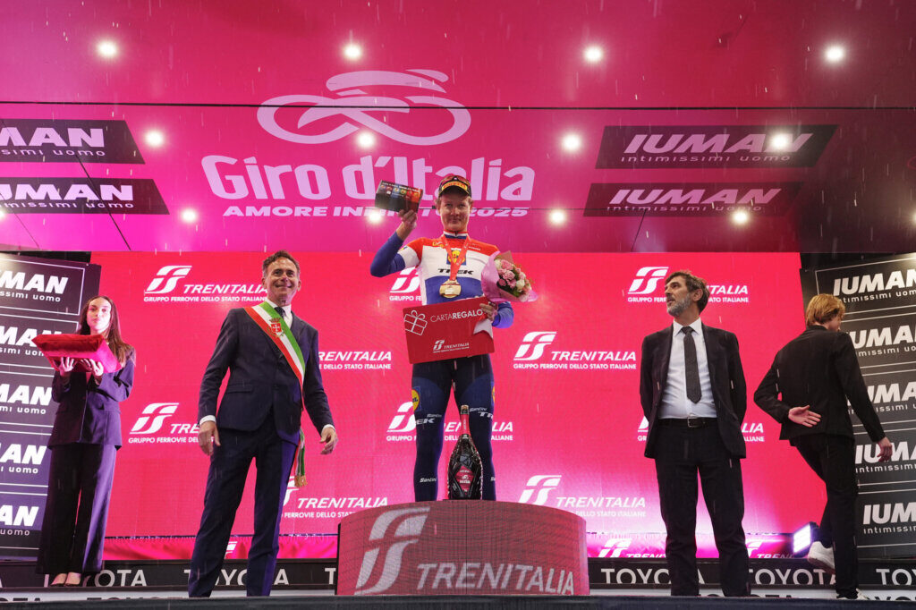 Il campione nazionale olandese ha costruito il successo nella seconda parte di gara, fermando il cronometro in 32’30” e precedendo di 7″ Joshua Tarling – vincitore della prova di Tirana e in testa al primo intertempo – e di 10″ Ethan Hayter. La pioggia ha complicato la prova per i big della classifica generale, impedendo una sfida diretta per la vittoria di tappa. Il podio della generale – Del Toro, Ayuso e Tiberi – rimane invariato, ma con distacchi ridotti: il messicano della UAE Team Emirates XRG ha perso 29″ da Tiberi, 48″ da Ayuso e 1’07” da Roglič, conservando la maglia rosa per soli 25″ sul connazionale e compagno di squadra. In evidenza le rimonte di Simon Yates, ora quarto a 1’03”, e di Primož Roglič, che risale al quinto posto a 1’18”. Più in difficoltà invece Giulio Ciccone (2’07”), Richard Carapaz (2’10”) ed Egan Bernal, che ha accusato un ritardo di 2’58” da Hoole ed è uscito dalla top 10 della generale.